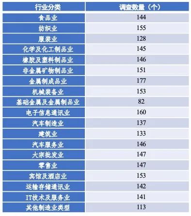 测量方法为随机分层抽样调查法,其中三个层次分别为企业规模、企业门类和(国家层级以下的)区域分布。