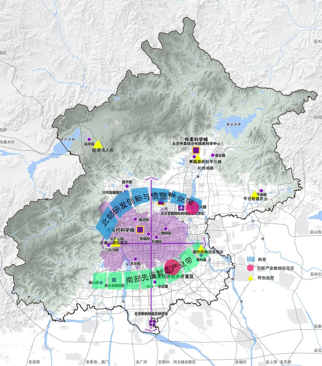 (一)遵循北京市高精尖产业发展规划布局。《北京市“十四五”时期高精尖产业发展规划》(简称“高精尖规划”)中提出打造“一区两带多组团”分区发展格局。即提升“一区”产业能级,在北京经济技术开发区、顺义区建设创新型产业集群示范区;全力打造南北两个产业聚集带,北部以海淀区、昌平区、朝阳区为核心打造研发创新与信息产业带,南部以丰台区、大兴区、房山区为核心打造先进智造产业带;加快建设一批特色鲜明的产业组团,重点促进通州区网络信息安全产业、石景山区虚拟现实产业、怀柔区高端科学仪器和传感器产业、延庆区无人机产业等组团发展。