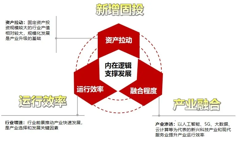 产业地产的产业定位受到区域经济、产业基础、产业资源、区域规划等多重因素影响,本文构建产业地产产业定位逻辑主要从产业经济发展的角度,重点考虑固定资产投资效率、产业发展运营效率、产业融合与渗透性三大因素的影响。