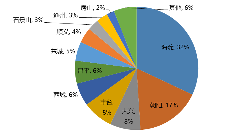 图1 2019年北京市各区总部企业数量分布