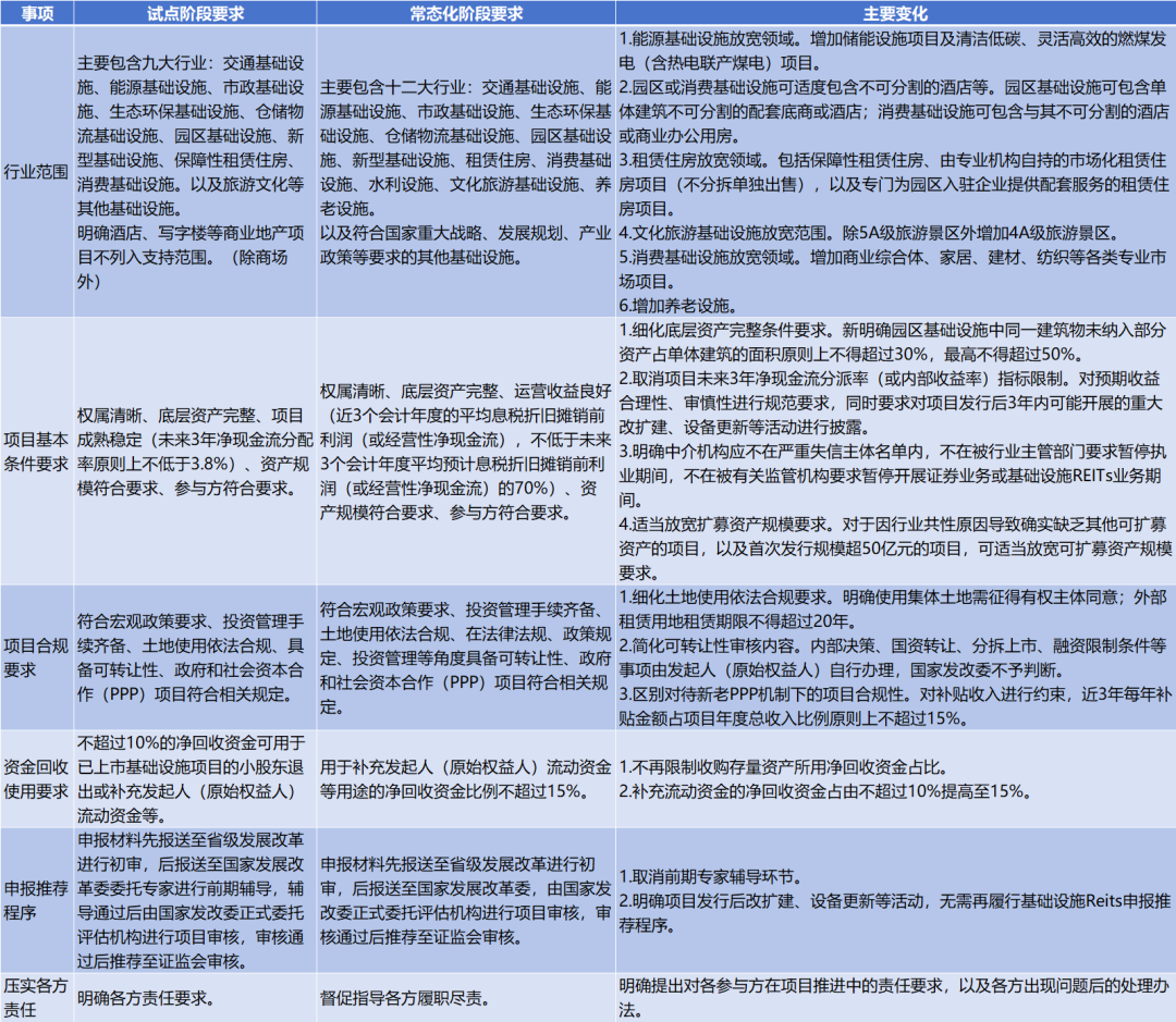 表2 基础设施领域不动产投资信托基金(REITs)项目申报要求变化对比表