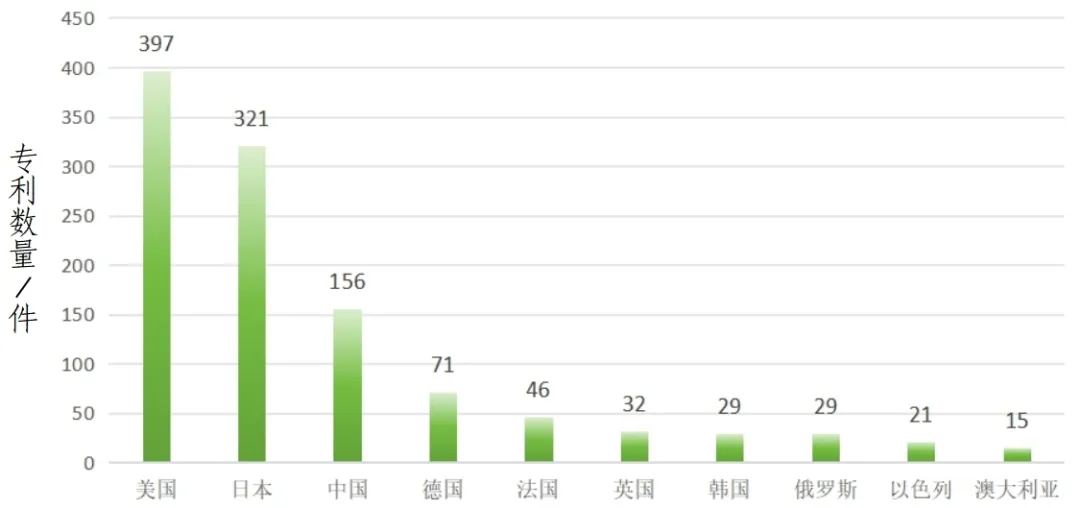 图1 eVTOL领域专利申请量排名前十的国家和组织(截止到2024年)