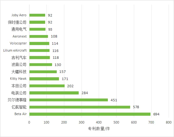 图5 全球eVTOL领域专利申请量前十五位的申请人(截止到2024年)