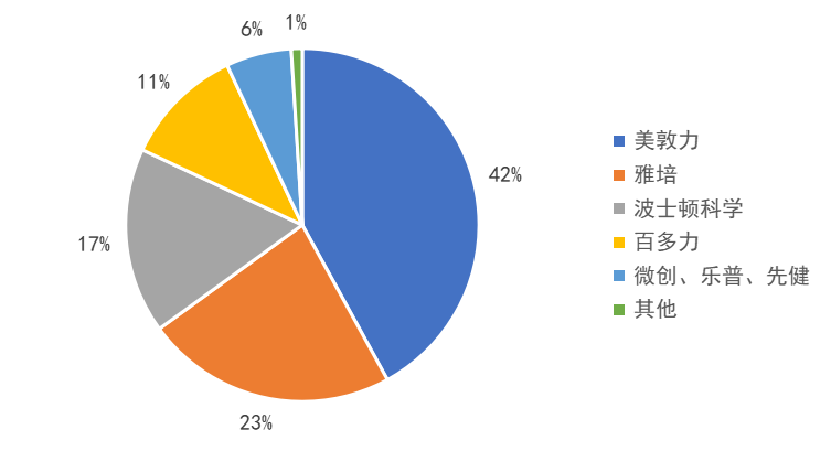 图7 2021年中国心脏起搏器市场份额情况