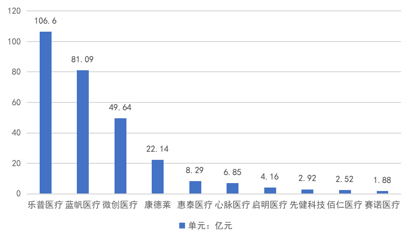 图8 2021年国产心血管介入器械公司营业收入排名