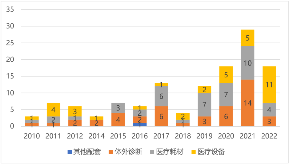 图1 中国A股医疗器械细分领域上市企业数量(截至2022年12月)