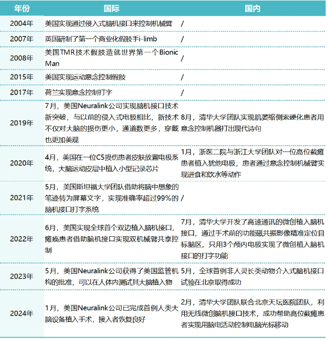表1 21世纪后脑机接口的国内外研究进展