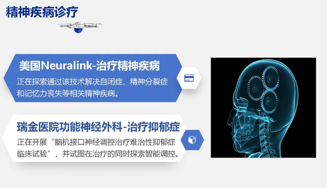 基于算法学习提取的脑电信号特征,能提供远超其他生理信号的真实、深层情感信息,从而实现对多种情绪的判别和分析。因此,基于脑电信号的神经反馈训练、情感识别研究可用于辅助记忆力丧失、自闭症等精神类疾病发病机制的研究和治疗。目前国内外在将侵入式BCI技术用于抑郁症辅助诊疗方面取得一定研究进展,但尚处实验室研究阶段。