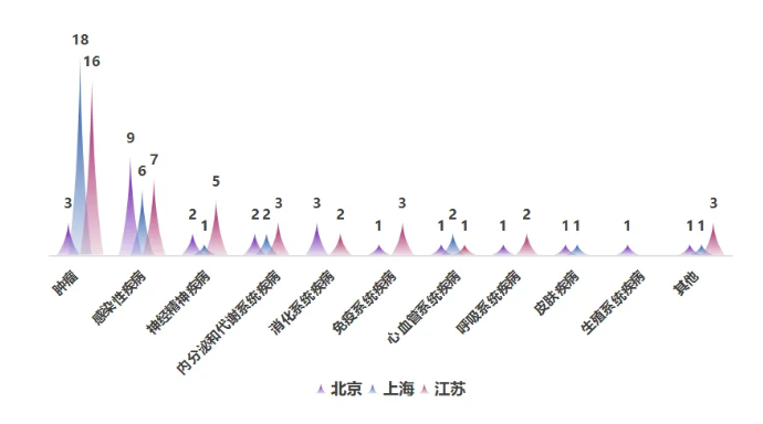 二、治疗领域:北京“多元布局”,苏沪“相对集中”