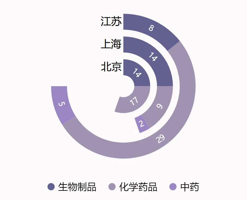 三、药品类型:上海“两轮驱动”,京苏“各有千秋”
