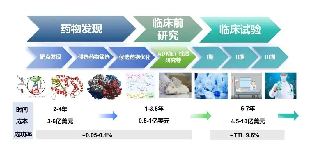 相关数据表示,至今60%疾病无有效治疗药物,大量临床需求未被满足,业界迫切需要新的研发工具和范式加快新药研发上市,AI+新药研发进入关注视野。目前AI主要应用在靶点发现、化合物合成、化合物筛选、晶型预测、适配患者招募等环节。