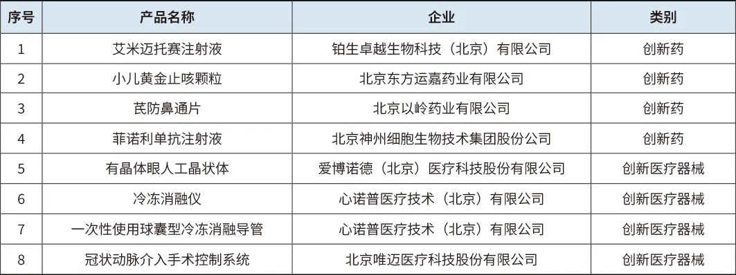 2024年完成约200个创新药械产品纳入项目制管理,推动171个创新药获批临床试验,26个品种纳入国家药监局优先审评与突破性治疗品种,33个医疗器械进入创新特别审查程序。今年以来,北京市已获批8款创新药械(见表1),数量居全国首位。