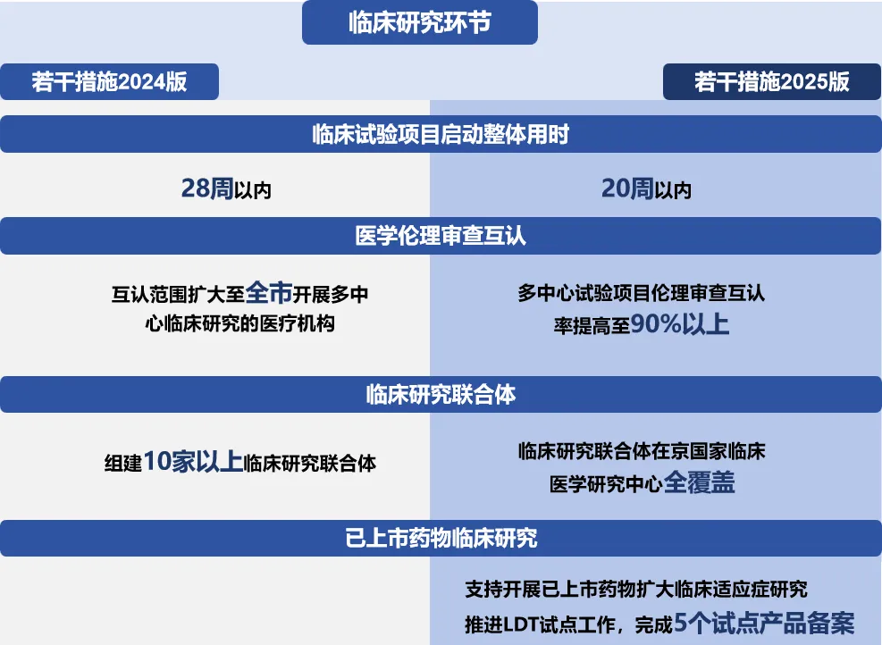 4月7日,北京市医保局、市卫生健康委等九部门联合发布《北京市支持创新医药高质量发展若干措施(2025年)》(简称《若干措施2025版》),从创新研发、临床试验、审评审批、生产制造、流通贸易、临床应用等全链条提出新一轮32条措施,持续完善“一条链”服务,进一步推动北京市“万亿”医药健康产业再上新台阶。这是北京市医保局、市卫生健康委等九部门连续第二年共同出台支持创新医药高质量发展的专项政策,2024年4月17日发布的《北京市支持创新医药高质量发展若干措施(2024年)》(简称《若干措施》)实施成效显著。本文对两版政策进行对比,结合北京支持创新医药发展的实际成效,梳理《若干措施2025版》的政策亮点。