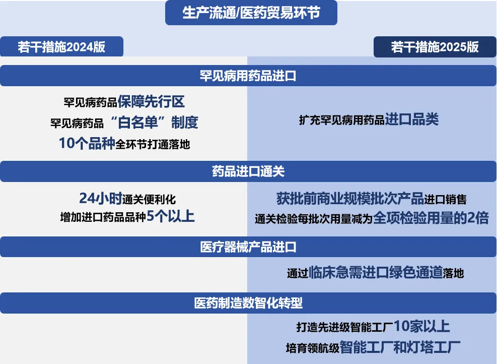 《若干措施2025版》明确鼓励创新医药本地化生产,支持企业从国外引进重大药械品种,推动创新药械品种产业化落地和规模化应用,“一企一策”做好服务。提出支持境外药品上市许可持有人跨境分段生产,开展生物制品分段生产试点;支持跨国企业以委托生产方式办理药品生产许可证并在京上市,探索开展医疗器械产品跨境委托生产先行先试。助力境内生产深度融入全球供应链,进一步稳定外资企业预期,吸引跨国医药企业扩大在华投资,引进先进技术和研发经验。