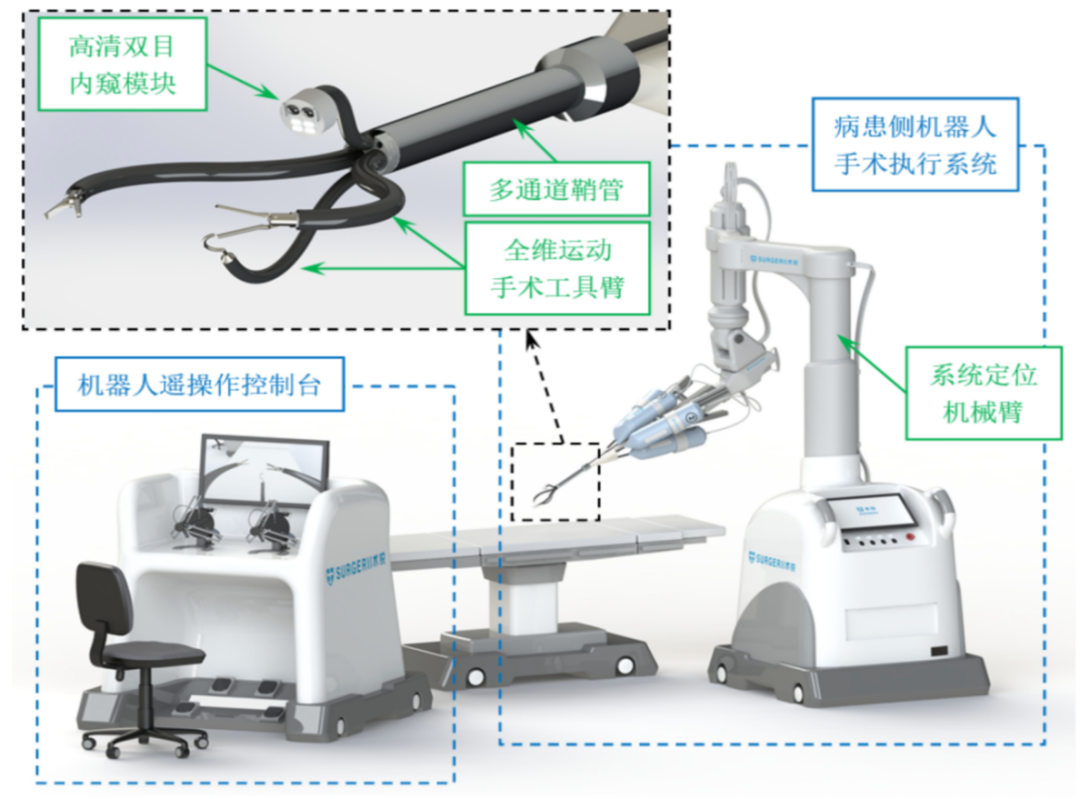 手术机器人主要包括操作控制台、机械臂系统、成像系统、动力与传感系统等核心部件。操作控制台作为医生与机器交互的核心平台,是机器人的“大脑”;机械臂直接接触患者,是机器人的“双手”;成像系统具有3D立体视觉、荧光导航、影像融合功能,是机器人的“眼睛”;动力与传感系统决定了操作精度、安全性和人机交互能力,是机器人的“心脏与神经”。