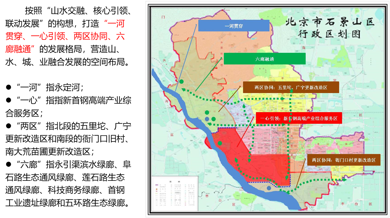 对永定河(石景山段)文化资源、空间资源、企业资源、生态资源等进行摸底调研,梳理重大项目,提出绿色生态发展带建设的总体思路、发展目标、重点任务和建议举措